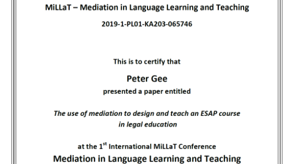 “The use of mediation to design and teach an ESAP course in legal education” is another presentation on mediation prepared by Peter Gee. You can read about the previous materials here: <link https://bit.ly/3wSDhLx>https://bit.ly/3wSDhLx</link>.