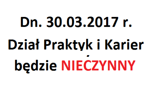 30.03.2017 r. - Dział Praktyk i Karier zamknięty
