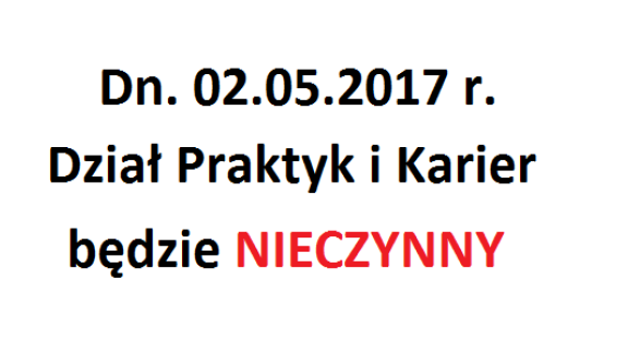 02.05.2017 r. - Dział Praktyk i Karier zamknięty