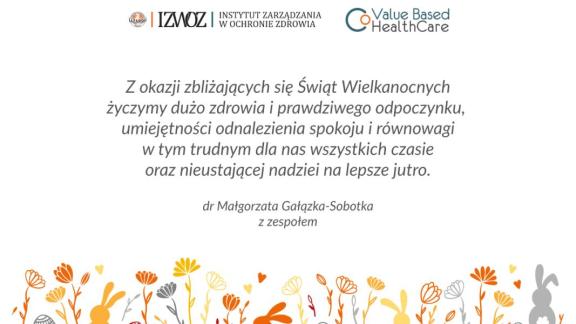 Z okazji zbliżających się Świąt Wielkanocnych życzymy dużo zdrowia i prawdziwego odpoczynku, umiejętności odnalezienia spokoju i równowagi w tym trudnym dla nas wszystkich czasie oraz nieustającej nadziei na lepsze jutro.