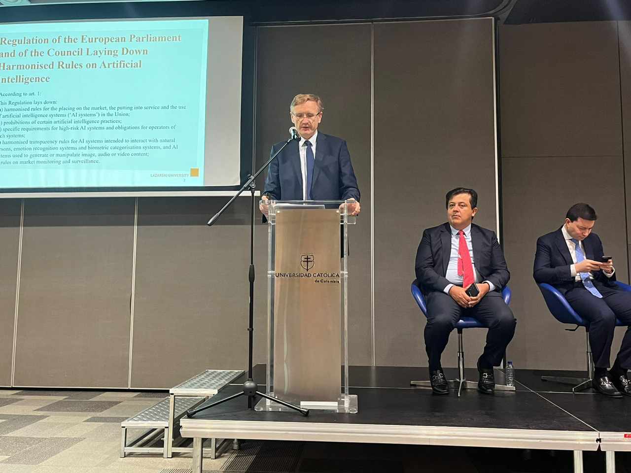 Konferencja została zorganizowana przez Prof. Dr. Paula Ramírez z Wydziału Prawa na Universidad Católica de Colombia, która otworzyła konferencję. Pierwszy wykład wprowadzający zatytułowany Regulation of EU on Artificial Intelligence (Regulacje UE w zakresie sztucznej inteligecji) wygłosił prof. dr hab. Maciej Rogalski. Przybliżył uregulowania AI wprowadzone w Europie. W czasie konferencji odbyły się m.in. dwa panele z udziałem prawników-praktyków, w tym sędziów, prokuratorów i adwokatów, poświęcone praktycznym aspektom stosowania sztucznej inteligencji w wymiarze sprawiedliwości.