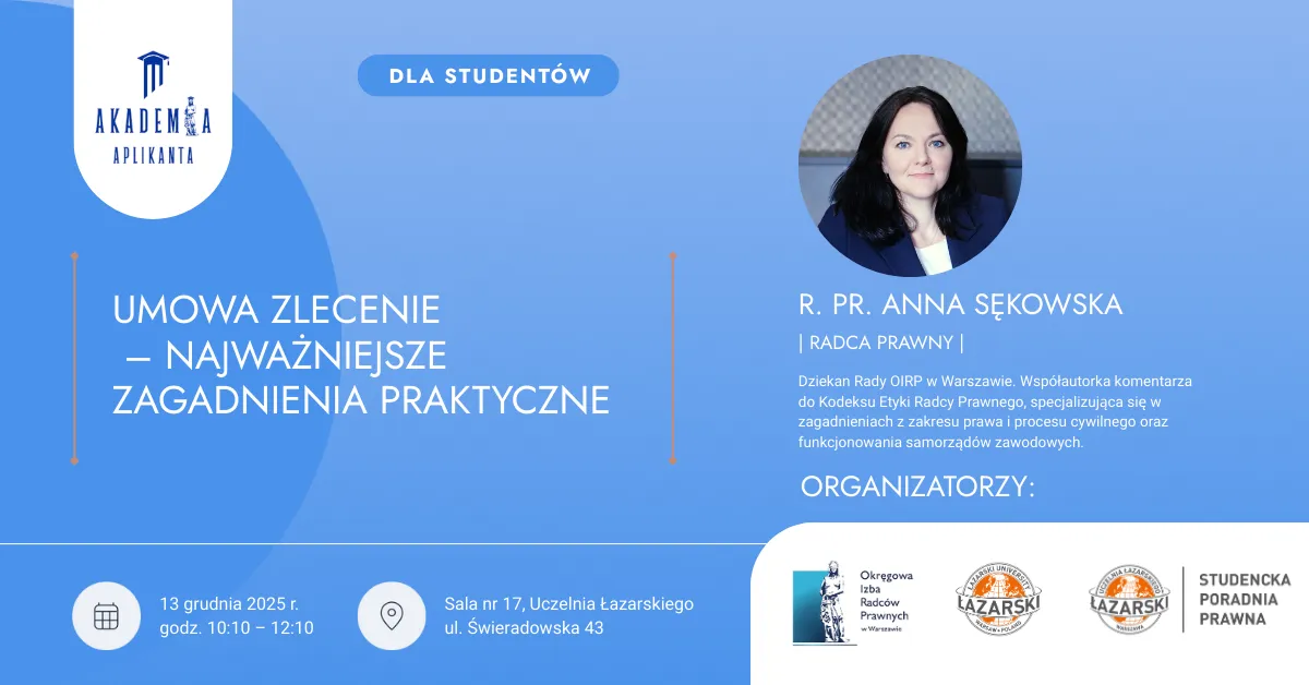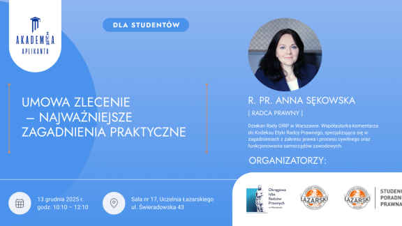 Okręgowa Izba Radców Prawnych w Warszawie to największa izba radcowska w Polsce, zrzeszająca radców prawnych i aplikantów oraz aktywnie wspierająca rozwój młodych prawników, która po raz kolejny zaprasza studentów prawa na wydarzenie z cyklu #AkademiaAplikanta.
